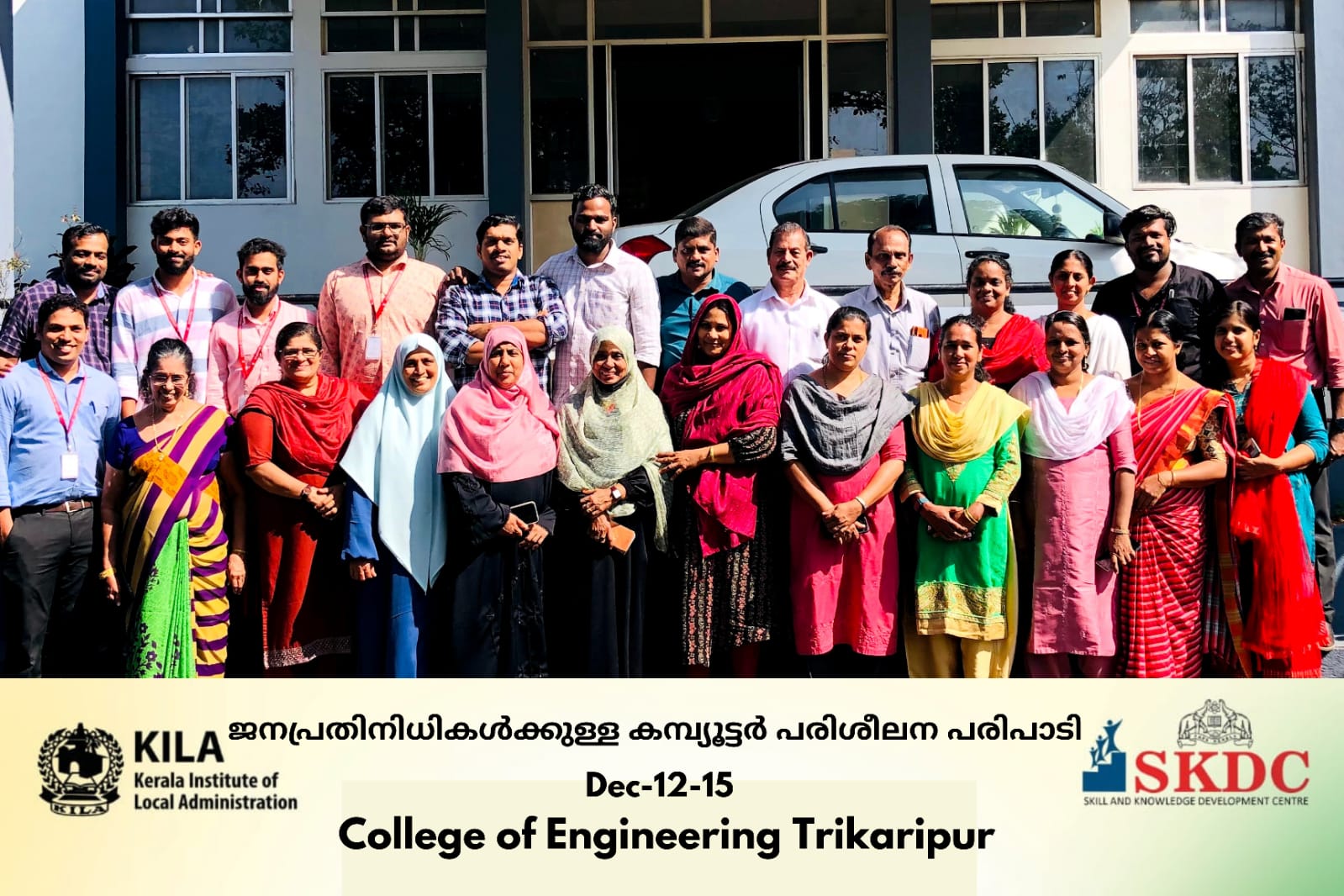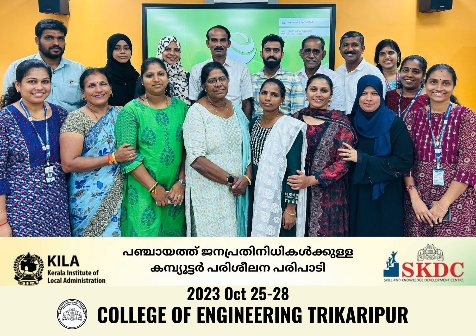 Furthermore, the center is poised to collaborate with industry partners to offer students and the public real-world experiences and networking opportunities. In a recent collaboration with KILA and the Government of Kerala, the SKDC provided training on "Computer Fundamentals" to elected members of Grama Panchayats in Kasaragod, Kannur, and Malappuram Districts. To date, the SKDC center at College of Engineering has successfully completed training for seven batches of Computer Fundamentals for Panchayat members.